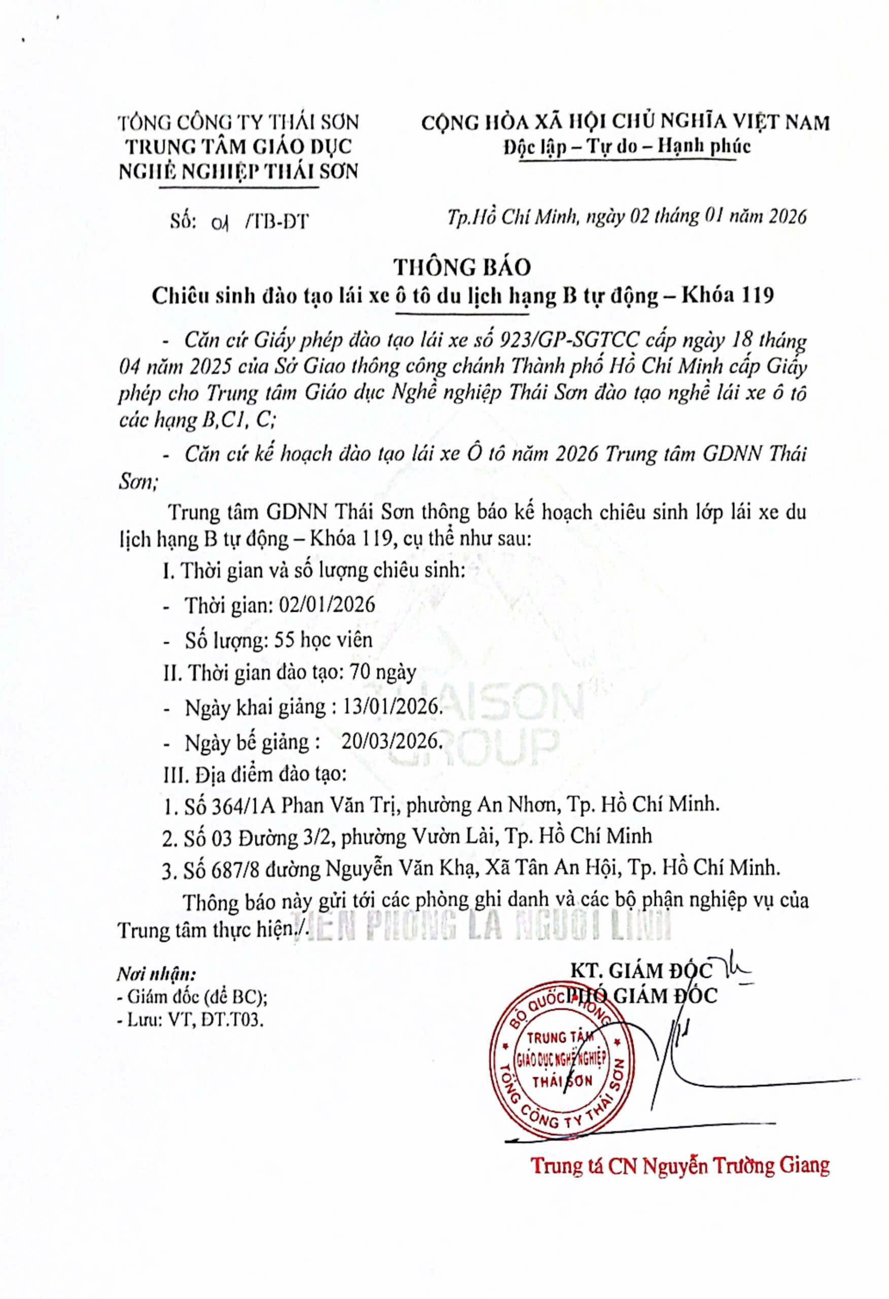 Trung tâm Giáo dục nghề nghiệp Thái Sơn