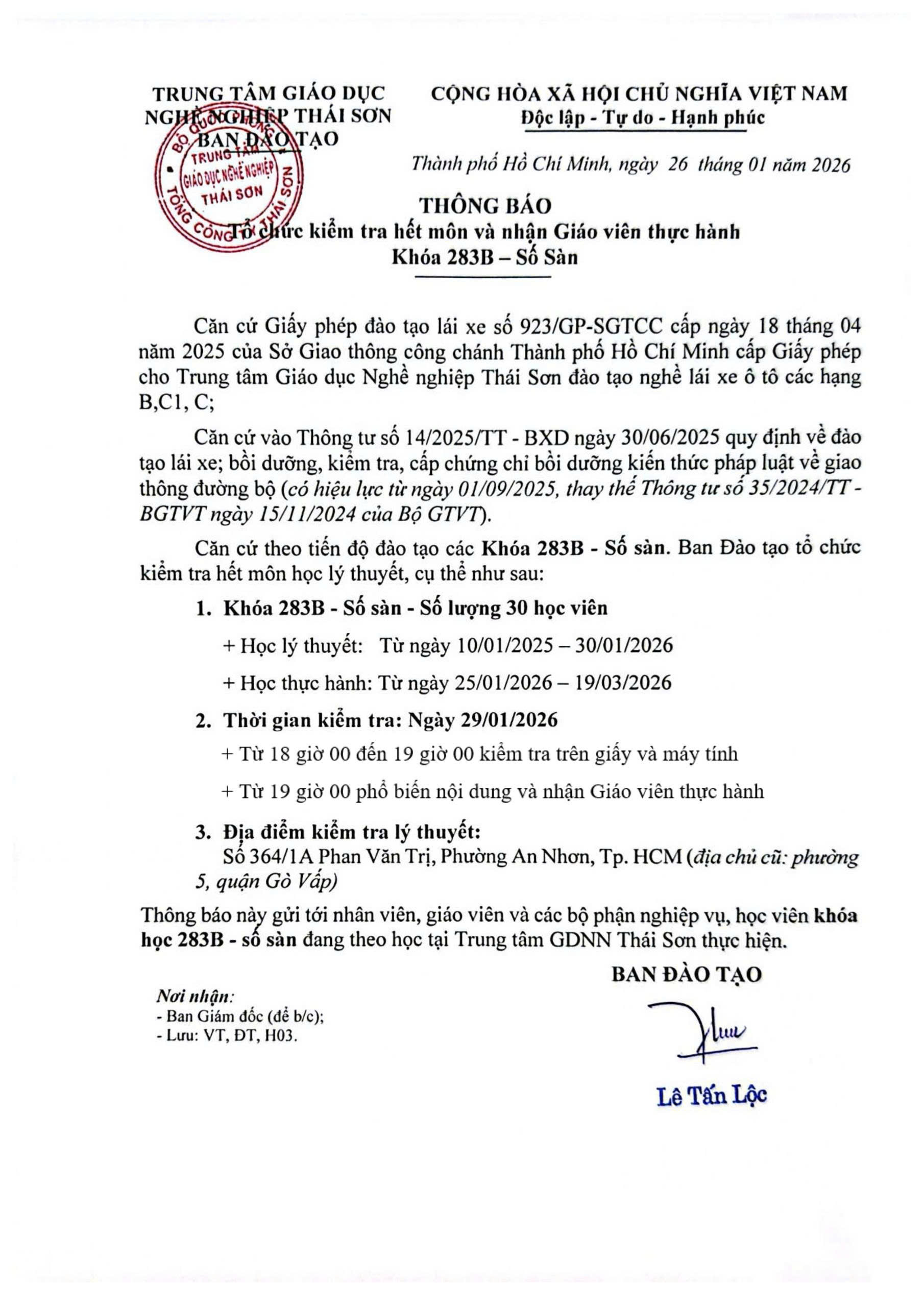 Lịch thi sát hạch