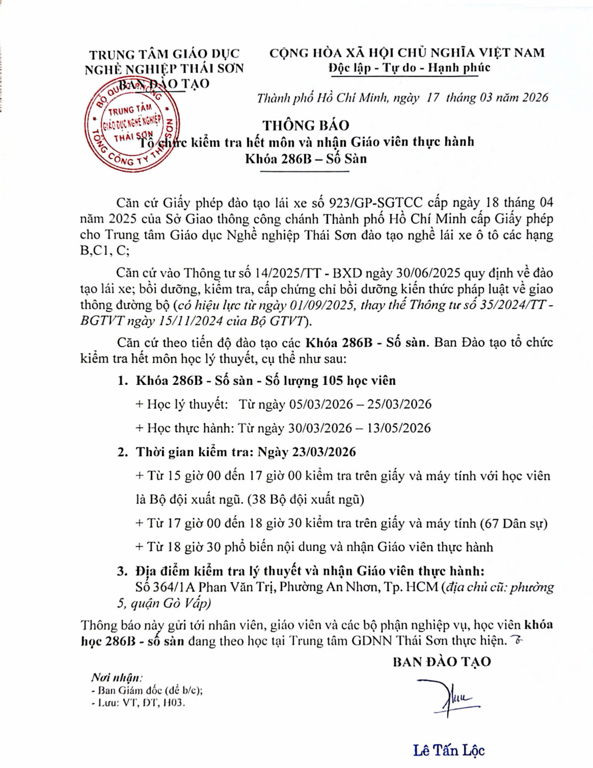 Lịch thi sát hạch